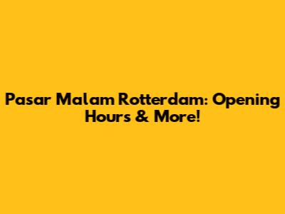Pasar Malam Rotterdam: Opening Hours